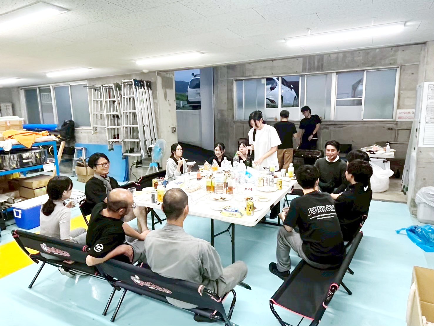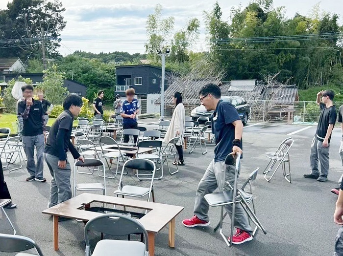 準備スタート! テーブルと座席を配置 皆でバーベキュー