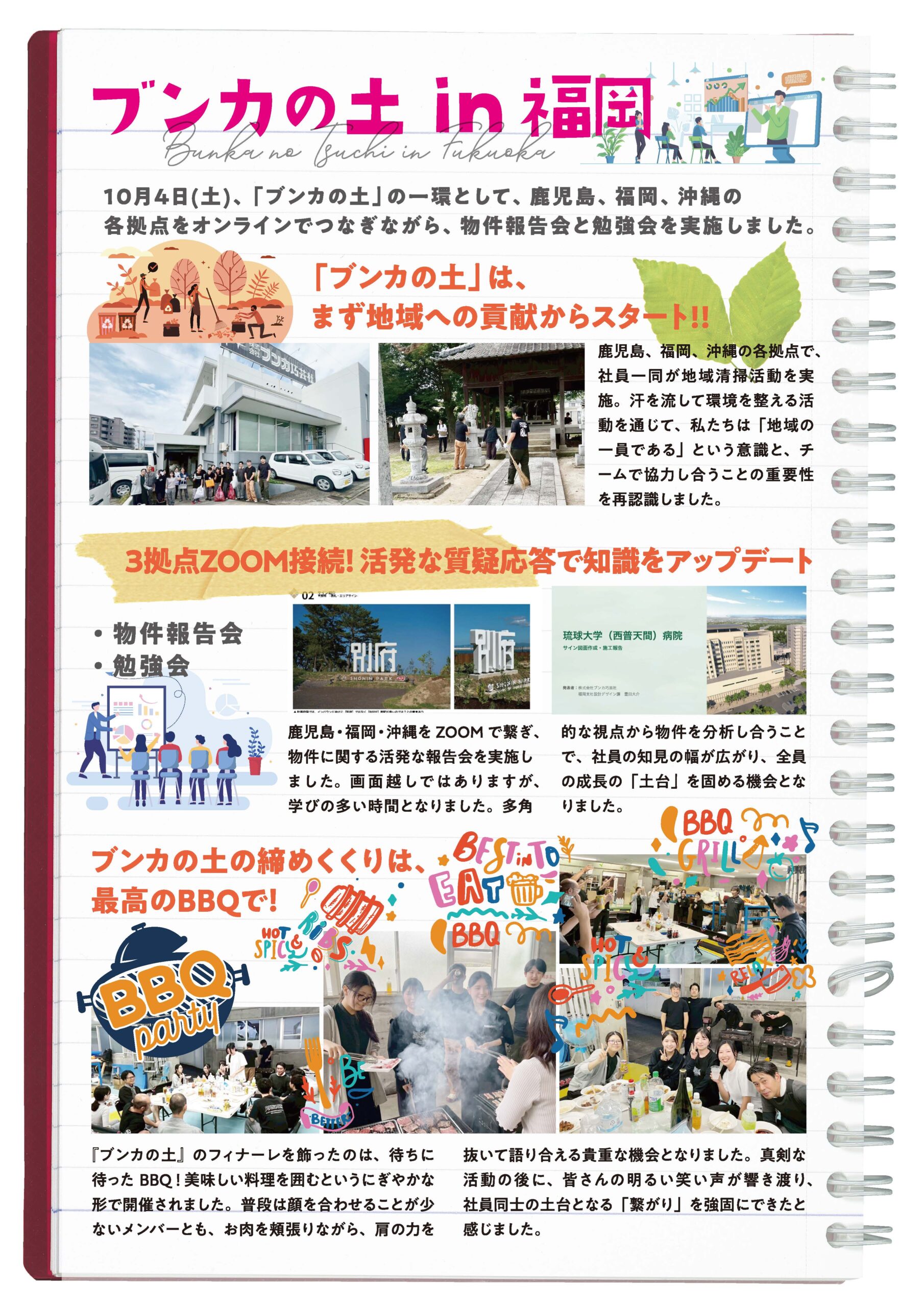 福岡担当の2ページを作成しました。 今回は福岡支社の活動をぎゅっと詰め込みました。 福岡支社の活気と団結力が伝わる内容になったのではないかと思います。ぜひご覧ください!
