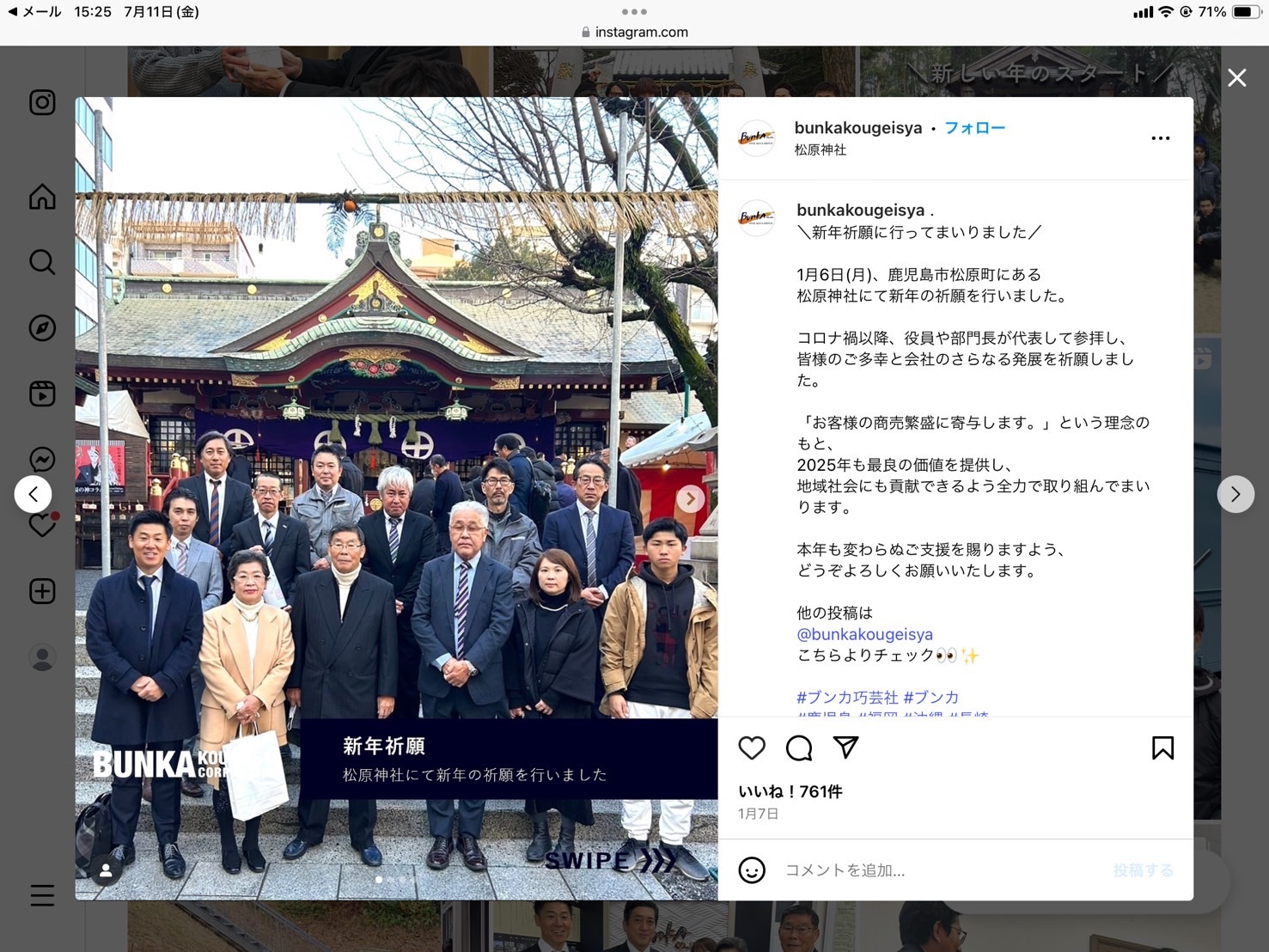 本社・福岡支社ともに新年祈願と、神社清掃を行った模様をアップしました。